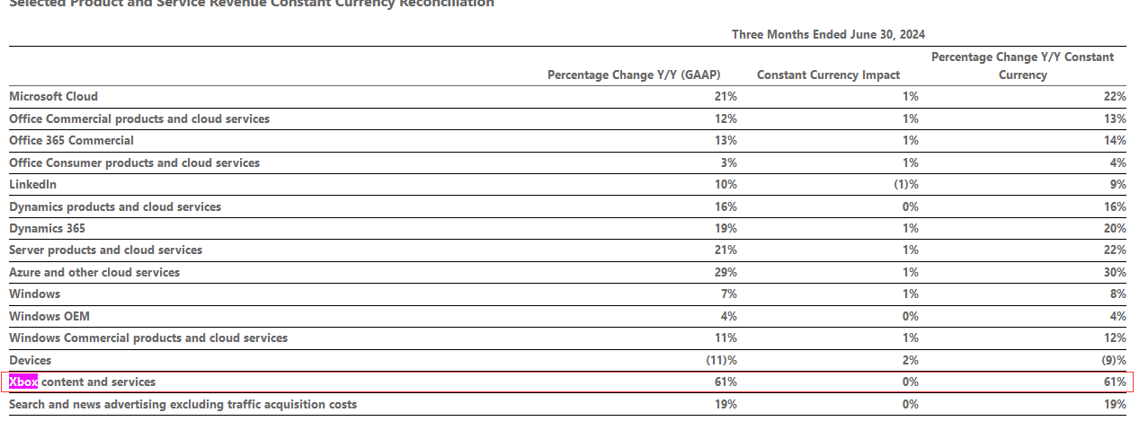微软发布2024 q4财报业绩,以下是游戏部门数据要点: