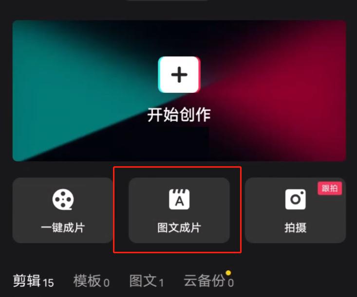 1、打开剪映,在开始创作下面用户们就可以看到新功能【图文成片】。