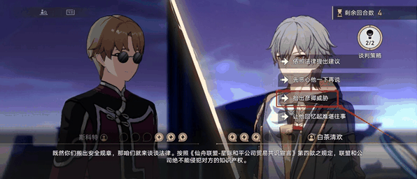 问题:在《崩坏:星穹铁道》斯科特谈判任务中遇到难题?简单说明:该任务需要你在三个回合的交涉中做出正确选项,以下是对如何顺利通关的详细攻略:引导大家阅读详细内容:为了帮助各位伙伴顺利完成斯科特谈判任务,叮当号子墨精心整理了本攻略,详细介绍了每个回合的正确选择。各位不必再烦恼,直接参考攻略,轻松通关。