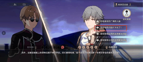 如果在第二回合没有选择情绪调度,需要在第三回合选择【是时候把问题扩大化了】来确保谈判的成功。