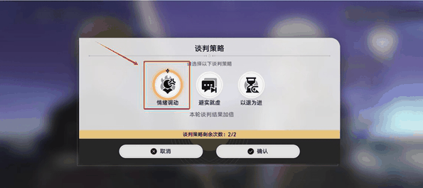 2、想要更顺利地谈判,可以先选择谈判策略中的【情绪调动】,有助于在接下来的选择中更容易达成协议。