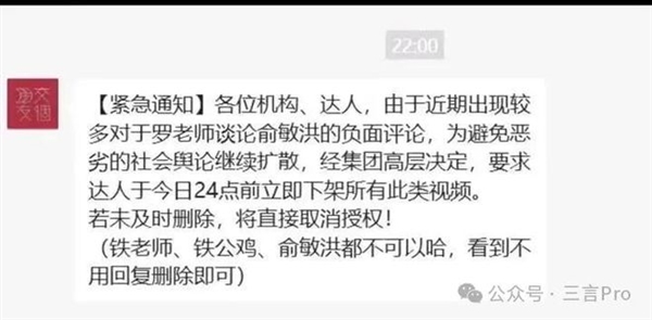 要求在8月3日24点前下架所有涉及罗永浩谈论俞敏洪的负面视频,否则将取消授权,这是因为近期出现了大量关于罗永浩批评俞敏洪的负面评论。