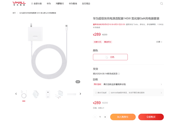 叮当号8月6日消息,今日,华为超级快充电源适配器140W氮化镓GaN充电器套装发布,目前已在华为商城等电商平台开售。