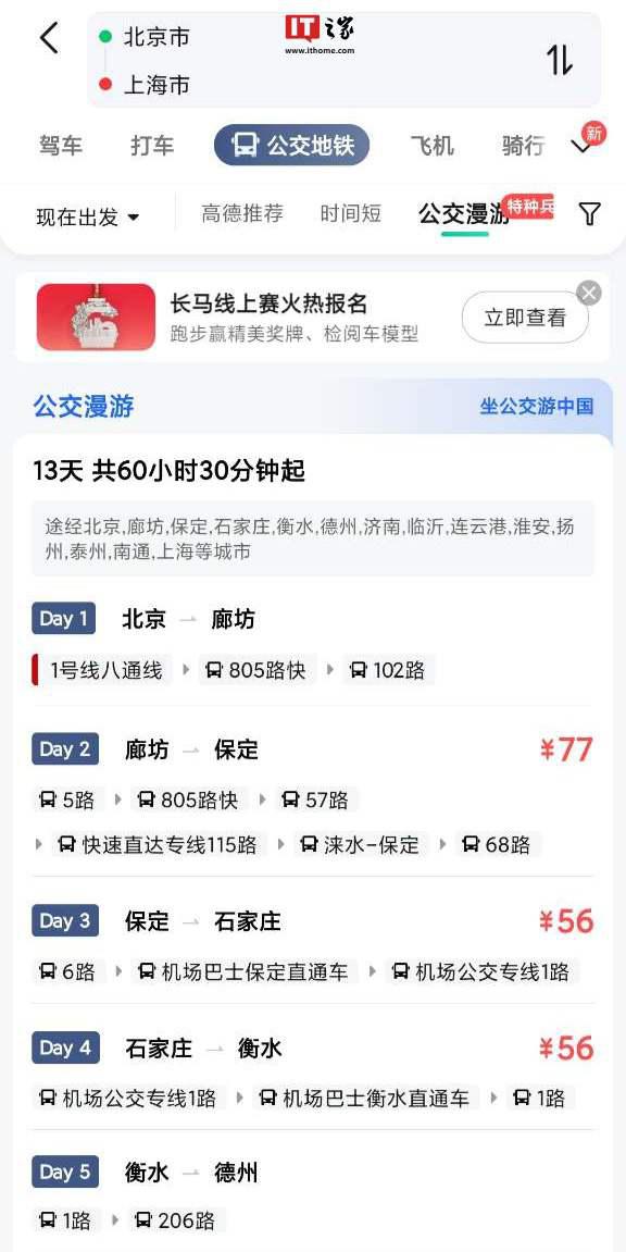 本站 8 月 8 日消息,高德地图今日宣布全新升级超远距离的路线规划,支持超远距离的公交漫游,已覆盖全国百城。用户只要在 app 上进行选择,即可体验多种出行方案。