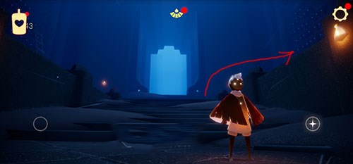 4、等到玩家落地后在右边有这个紫色光芒就是心之灵。