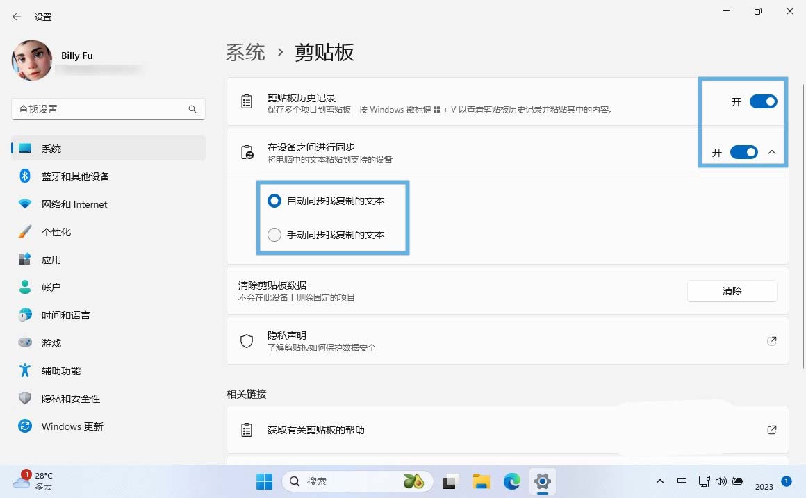 方法 1:通过「设置」启用 Windows 11 剪贴板同步