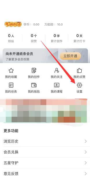 1、首先打开纸条,进入我的页面,点开设置。