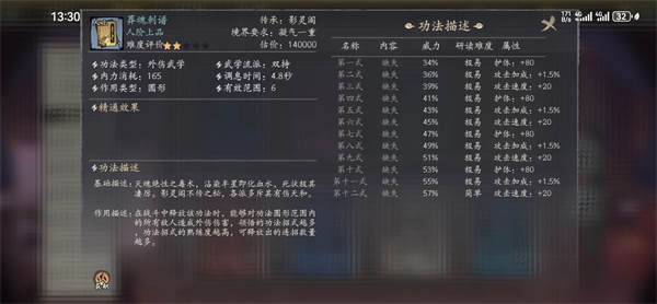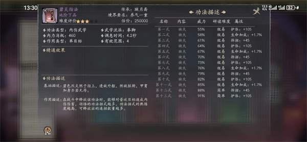以人上武学为例,人上武学的满熟练度为30000,释放时消耗的内力为150点左右,凝气六重人物的内力值为4800,算这个人物能打满全场,大概能释放技能32次。凝气圆满后突破养气期,养气一重人物的内力值在5600左右,养气期开始可以学习地下武学,地下武学的熟练度上限为10000,武学释放时内力消耗在450左右,相当于释放技能的次数从32次变为15次,持续输出能力大大减弱,而且技能熟练度跟伤害相关,盲目升阶技能会导致人物战力数值上升高,但是实际表现上不尽如人意,所以在境界突破后一定要谨慎选择是否学习新的高品阶技能。这个说法适用于人下武学到地上武学的各个阶段。
