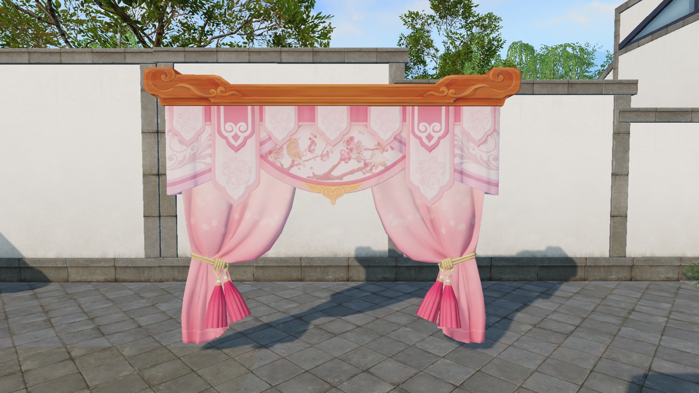 经过大荒建筑师的巧手搭建,各式各样的亭台楼阁出现在家园之中。少侠们或以书架屏风为墙,以花藤草木筑栏,别有一番意境。若是能挂上一套丝绸布幔装点,微风拂过帷幔扬起,动感十足!嫩粉色的【丹花赤霞】娇俏活泼,淡蓝色的【鎏金烟波】则更为清丽优雅,两款风格任君选择~