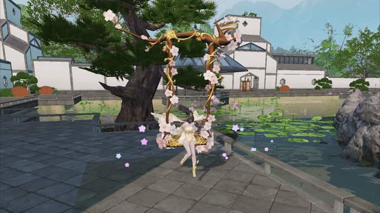 本次除了有多款新家具推出,还有家具【莺歌轻舞】惊喜返场!而且家具的交互动作也进行了迭代升级,人物坐在秋千上的动作更加自然,从少侠晃动的双腿中不难看出,荡秋千是真的很快乐~