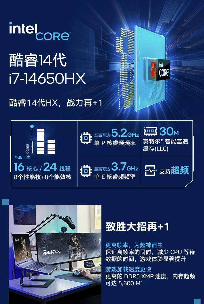 - 英特尔酷睿 i7-14650HX 处理器(16 核心,24 线程)