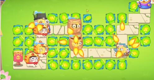2、接着在右侧上方安排一下两个满级电池,然后打扫萝卜附近的道具;