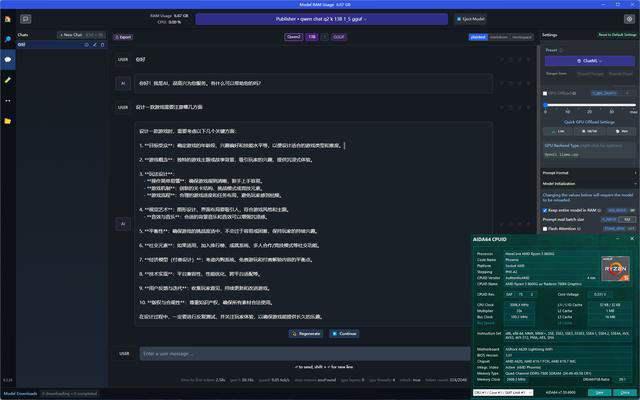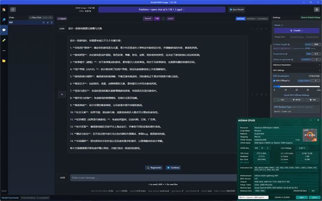 最后看看LM Studio大语言模型的运行情况,在AMD OpenCL框架下,对于Radeon 760M 8GB来说,数值设置为4时推理速度是最好的,使用锐龙5 8600G的话,建议最好优先使用NPU加速模式,效率不但比GPU推理更快,而且运行期间GPU负载基本是个位数状态,可以腾出性能来运行其他程序。最惊喜的还是锐龙5 8600G居然也可以跑得动14B规格的模型,回答速度不算特别快但已经能很好满足,像上述AI的10条建议也就花了三、四十秒罢了。