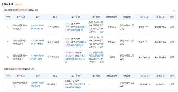 天眼查显示,该公司曾因劳务合同纠纷而被起诉3次,因劳动争议而被起诉1次。