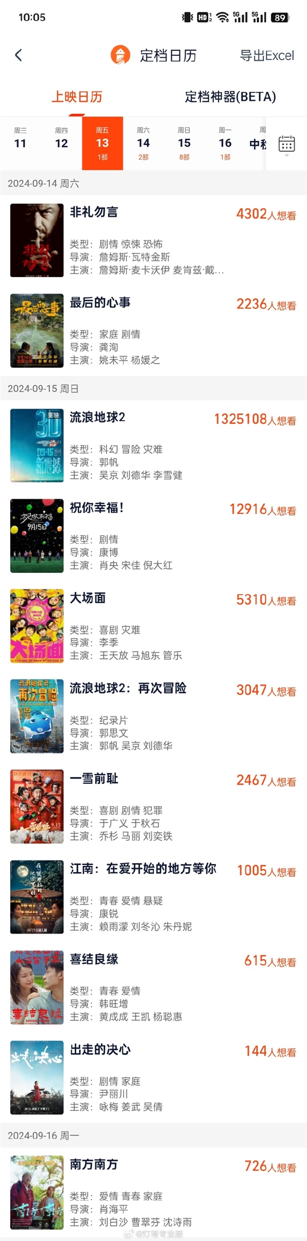 叮当号8月20日消息,据灯塔专业版,今年中秋档已定档11部新片!