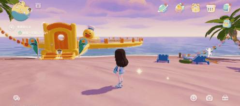 1、抵达【紫光沙滩】,在广阔的水面之上,您能够看到一个醒目的黄色鸭鸭乐园。
