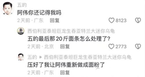 因为阿伟是压面工所以经常和面粉打交道,于是网友们调侃道: