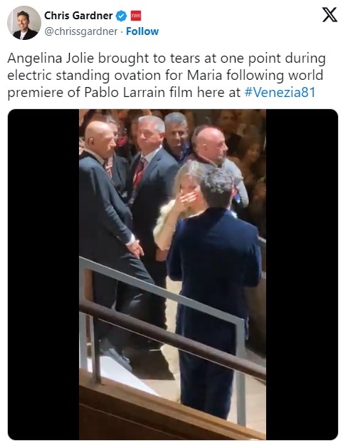 另外,由安吉丽娜·朱莉主演的传记片《玛丽亚》在威尼斯电影节上受到追捧,观众起立鼓掌八分钟之久,弄得这位曾扮演劳拉女汉子的乳癌斗士泪洒现场。