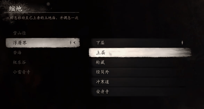 打开地图,前往小西天 – 浮屠塔 – 上层。到达目的地后,来到土地庙传送点处。这里仿佛是一个神秘的连接点,等待着玩家去开启新的冒险。