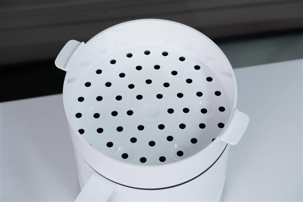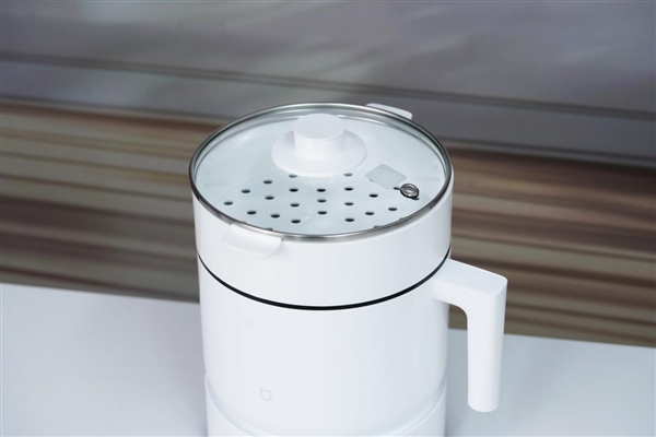 配备防爆玻璃上盖、耐热PP蒸笼,可实现煮面、火锅、蒸馒头/鸡蛋等多种功能,锅体内部采用食品接触级陶瓷涂层不粘内胆,外部则是加厚PP外壳。
