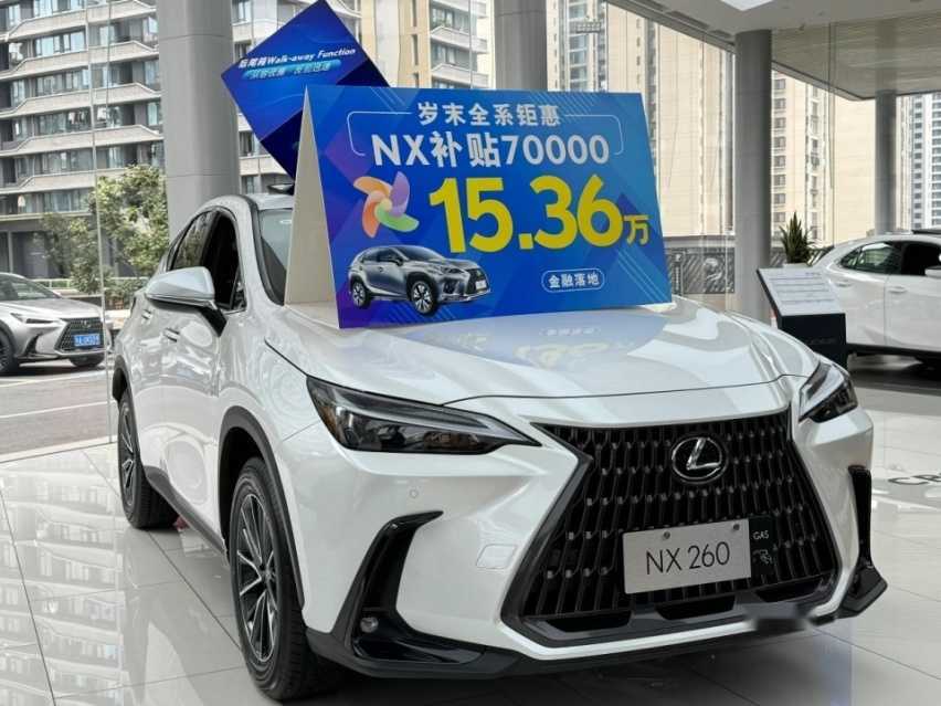 数字游戏还在继续,这是一台NX260,广告牌写着“15.36万”的字样,当然,这不是车价的全部,下方小字写着“金融落地”,估计也是五成首付的数字。