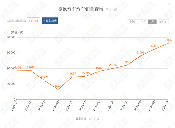 比如说零跑这样的 “ 经济适用房 ” 。11 月,零跑交付了 4 万台,已经接近理想,甚至咱们看它的历史销量( 暂无 11 月上牌量 ),从 2 月开始,几乎就是一条向上的直线,这要是换成大 A ,就好了呀。。。