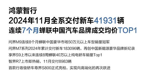 问界这边,销量的大头从原来的问界 M7 变成问界 M9 ,所以成交均价稳中有进,这是别家车企羡慕不来的。