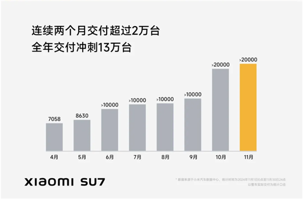 所以,光在国内干倒日系还不够,比亚迪要想成为全球领先的车企,还得哐哐砸钱干出口。说完比亚迪,再来看小米,虽然它全年估计交付只有 13 万,和比亚迪比简直是 “ 微观数据 ” ,但它只有 SU7 一台车,上市才第一年,现在就已经月销 2 万 + ,对于一个刚刚诞生的车企来说,这个数据已经够逆天了。