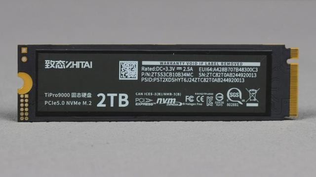 本次我们评测的致态TiPro9000 2TB采用单面PCB设计,拥有出色的空间兼容性。致态还在TiPro9000的PCB背面增加了复合材质标签,具备增强散热效果的作用。