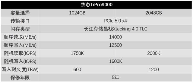 长江存储致态TiPro9000 PCIe 5.0 SSD产品规格