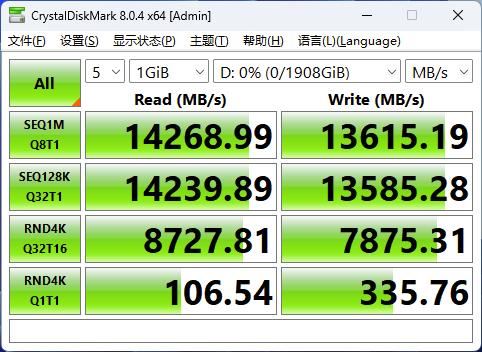 致态品牌问世至今,推出的SSD产品全部为接口带宽饱和(SATURATION)设计,即顺序读取速度能够跑满接口速度,致态TiPro9000也不例外。作为致态首款Gen 5产品,四年磨一剑的TiPro9000具备14GB/s顺序读取速度,跳过10GB/s和12GB/s的过渡阶段,一步到位实现了PCIe 5.0满速读取。