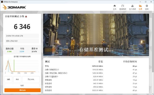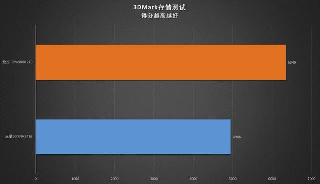 致态TiPro9000 2TB在3DMark存储测试中获得6346分,处于业界领先水平。