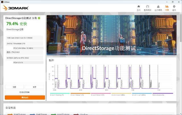 在12月4日3DMark更新推出了DirectStorage功能测试,可帮助玩家了解在理想情况下DirectStorage所能带来的性能提升。