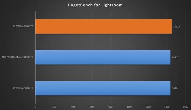 接下来是PugetBench for Lightroom测试,致态TiPro9000 2TB获得1452.5分:
