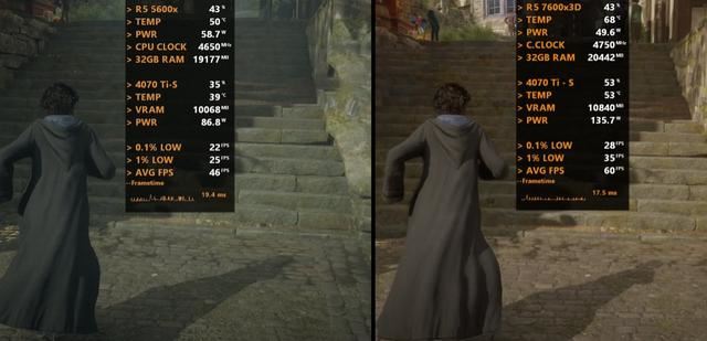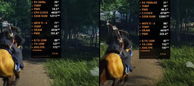 以下将分别测试七款游戏,均采用1080P画质模式,以下系列图片中左边代表Ryzen 5 5600X平台,右边代表Ryzen 5 7600X3D平台。