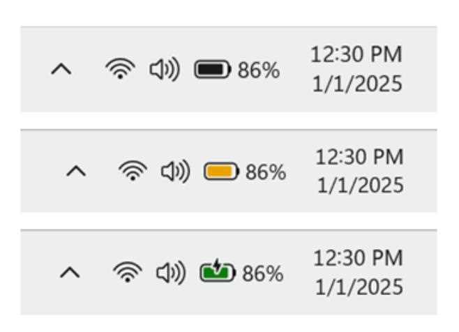 微软为 Canary 频道也引入了新版电池图标,使用颜色指示充电状态,微软称对电池图标的覆盖层进行优化,使其不遮挡进度条。