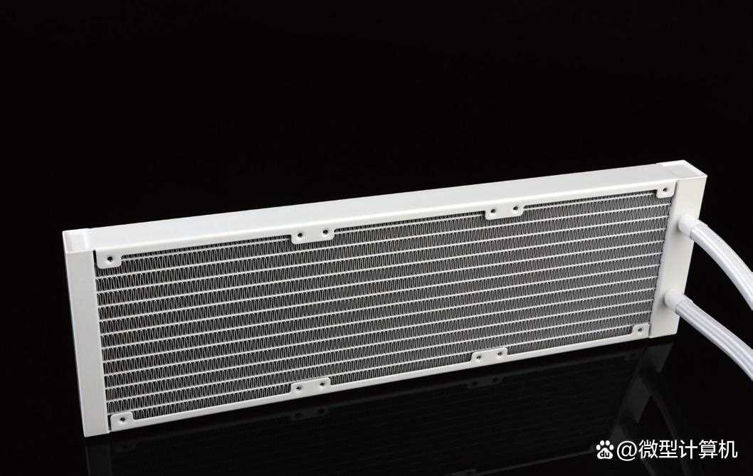 先马ZW360的冷排采用了高密度低水阻Z字形散热鳍片,这种设计大幅提高了散热效率。该散热器的冷排尺寸为397mm×120mm×27mm,相比传统的散热器,鳍片厚度达到27mm,内部拥有20mm厚度的水道,这不仅扩大散热器的储水量,还增加散热面积。采用低水阻设计的冷排能够更快地将热量传导到鳍片上,并通过空气流动进行散热,使得散热效果更出色。