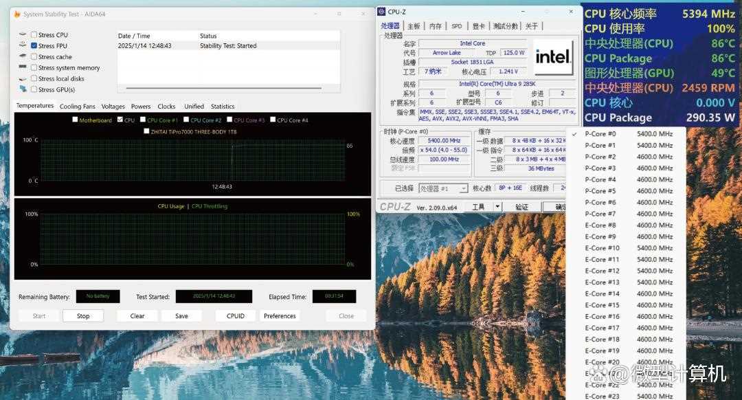 可让酷睿Ultra 9 285K功耗释放达290W且不过热