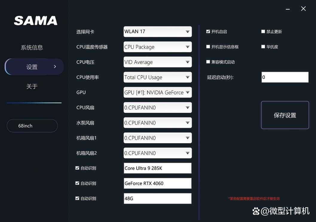 ▲软件的“设置”项中可以调节在屏幕上需要显示的数据