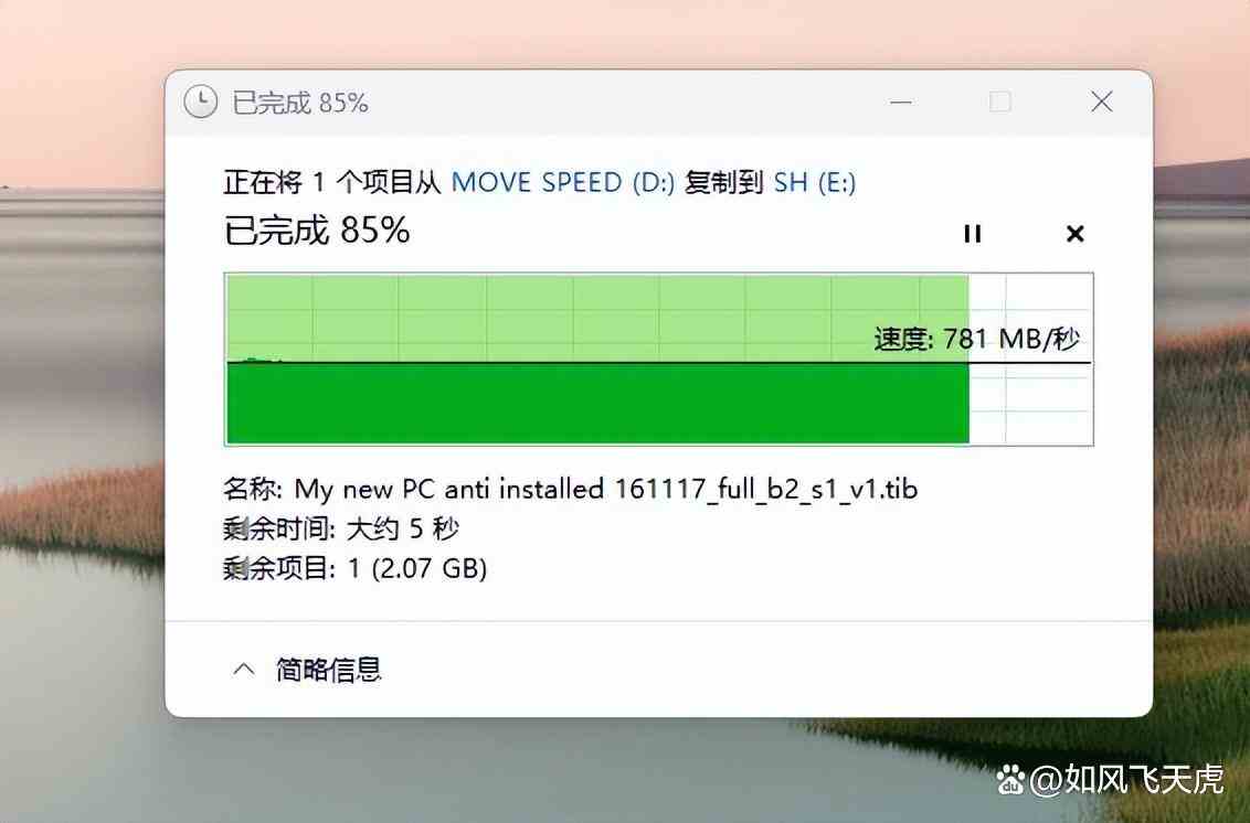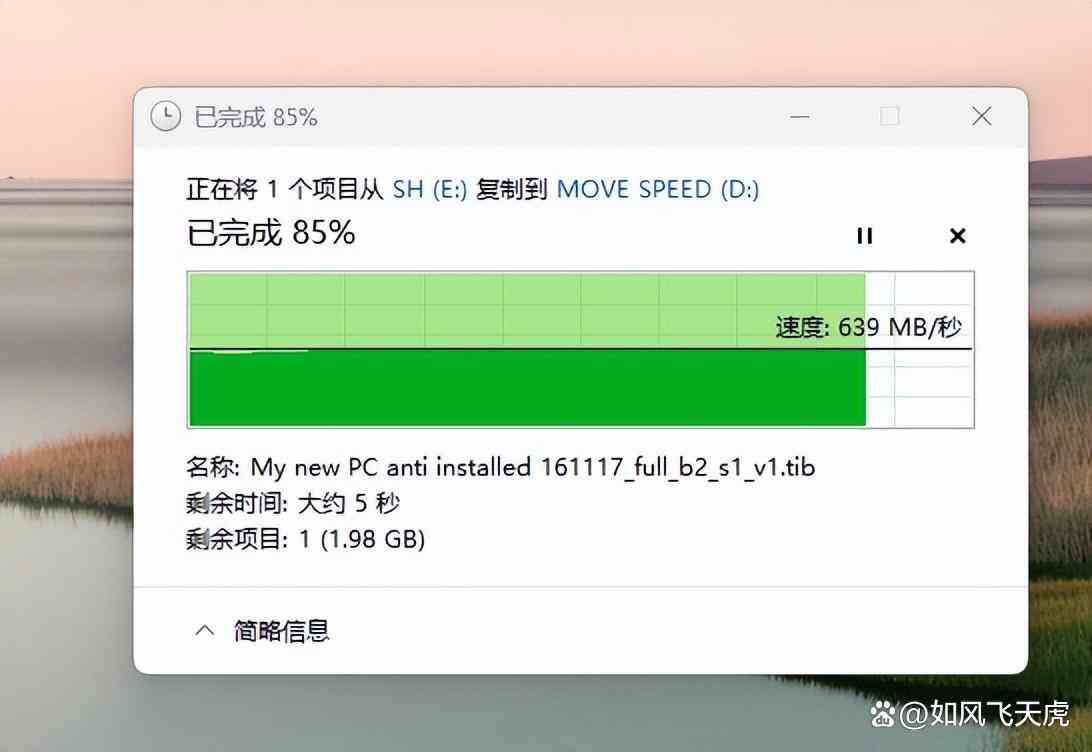 我实际复制一个14GB的大文件到电脑硬盘,可以看到,全程速度稳定不掉速。