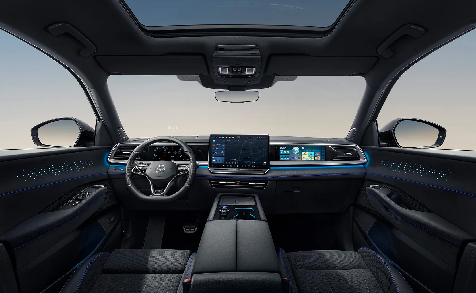 而作为途昂家族换代车型的途昂Pro,自然是要延续这一成功的产品经验,搭载了六屏联动数字座舱,由15英寸智能2K显示屏、11.6英寸副驾驶娱乐屏、10.3英寸全数字液晶仪表、HUD抬头显示系统和黑晶流光智控按钮,与手机屏幕组成了多屏联动座舱,再加上智能车机芯片、智能语音控制系统和内置的大量APP生态功能,其带来的智能化用车体验,完全不逊色于造车新势力阵营的竞品车型。