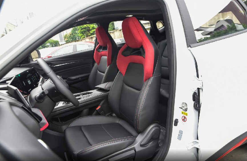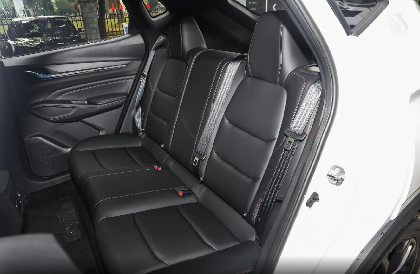 内饰中,位于主驾驶的前方设计了精致感和立体感充足的三联屏,其中包含了全液晶仪表和中控屏,以及驾驶辅助屏,观感细腻,且操作流畅性不错,对于一款不到10万块的紧凑型SUV来说,比较难得。另外,车机支持语音控制、无麦KTV功能,支持HUAWEI HiCar车机互联映射,高配版本还提供人脸识别和迎宾功能,科技氛围感不逊于主流的10万级新能源车。前排座椅采用一体式运动座椅设计,两侧护翼宽大舒适,包裹性表现良好,后排座椅填充相对偏软,满足了前后排乘客乘车的差异化需求。