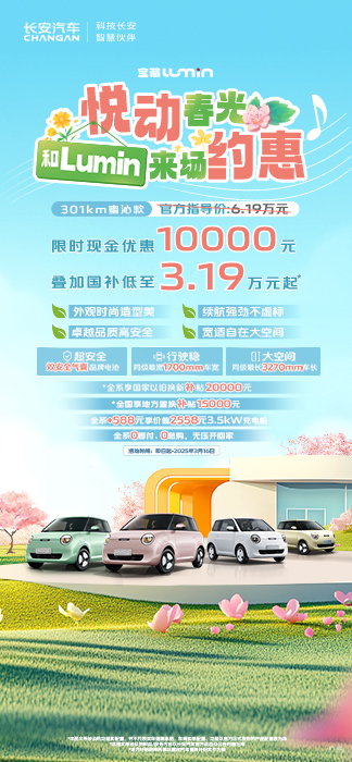 恰逢女神节,长安Lumin也为女性用户准备了专属宠粉福利。3月7日至3月9日,用户支付520元订金就能抵扣1314元购车款,优惠力度翻倍,让购车更加轻松。