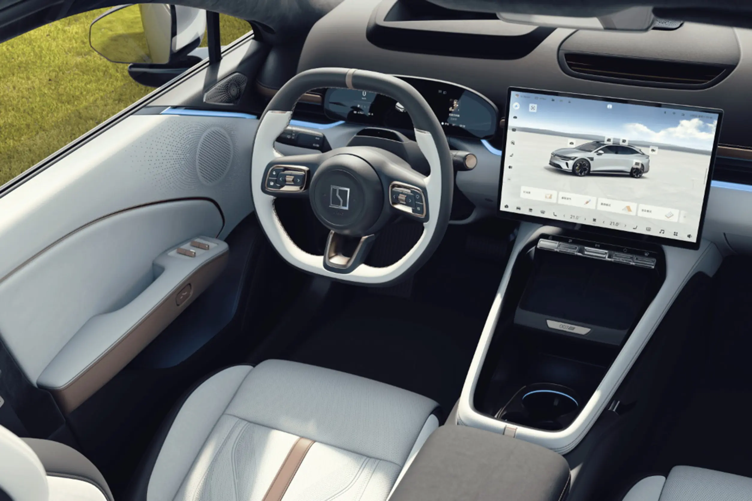 三辐方向盘很运动,提供两种内饰配色,极氪007GT内饰官图发布