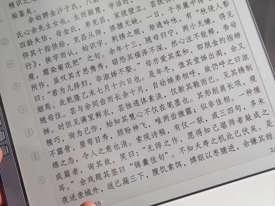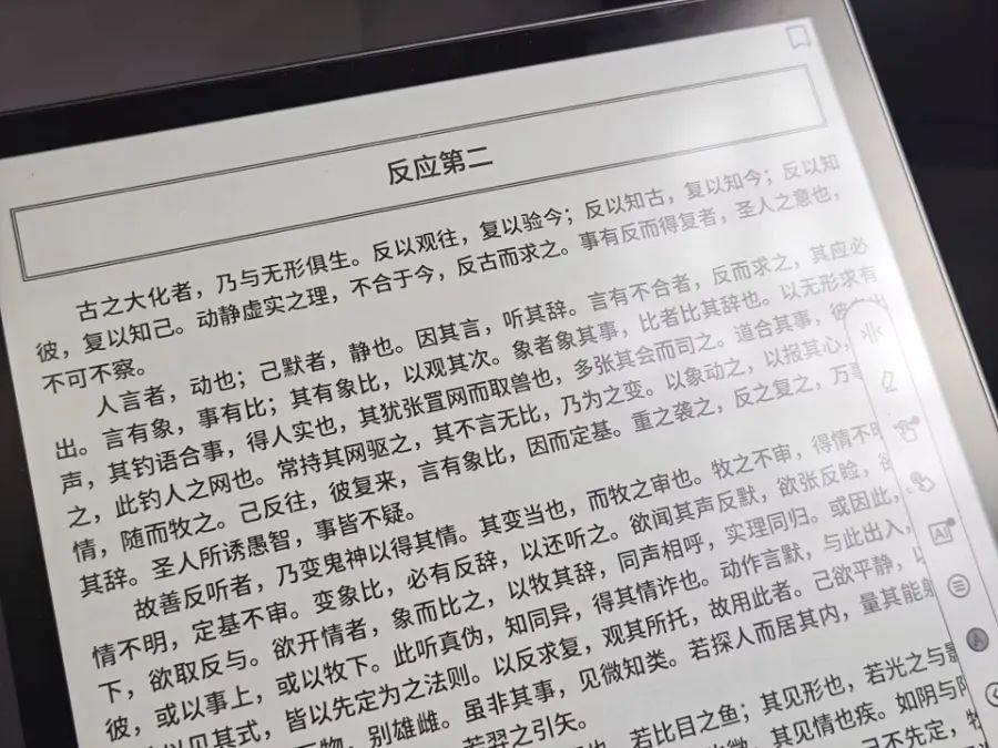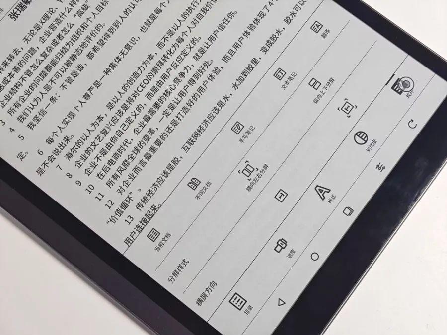掌阅Smart X3 Pro屏幕采用的是仿生柔光技术,屏幕为10.65英寸,分辨率为2560×1920,像素密度300PPI。同样为256级灰阶显示效果,图片显示平顺、细节清晰,字体边缘锐利。