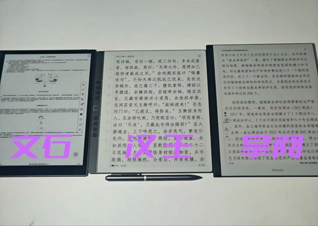 综合来看:汉王N10Pro 采用的是减屏层设计,屏幕更白。文石NoteX3Pro 有电容屏和导光板,而掌阅SmartX3 Pro 也有电容屏。因此,汉王N10 Pro的屏幕素质在三款产品中表现最为出色,无论是文字显示还是图像显示,都能够提供更加清晰、锐利、舒适的阅读体验。