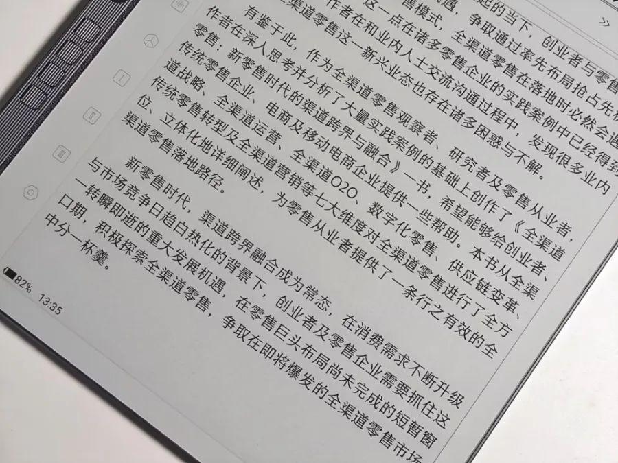 阅读时,屏幕通过模拟256级灰阶显示效果,文字和图像的显示效果非常接近纸质书,有种文字跃然纸上的感觉,长时间阅读也不会感到眼睛疲劳。