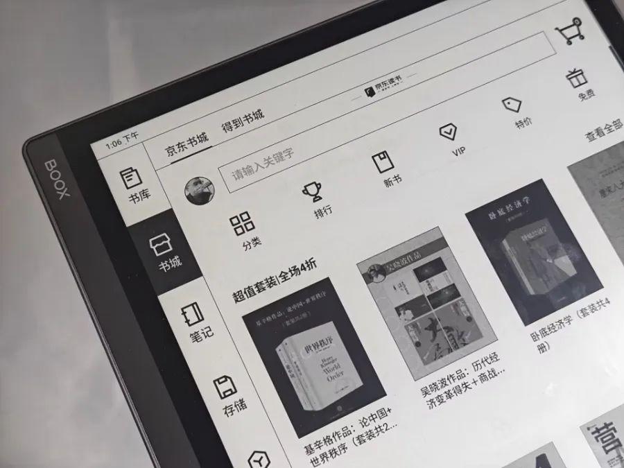 在书城里,文石Note X3 Pro预装有京东书城和得到书城,书目繁多,所列的也都是比较畅销的,不过,不如汉王的多,需要有针对性去查找。