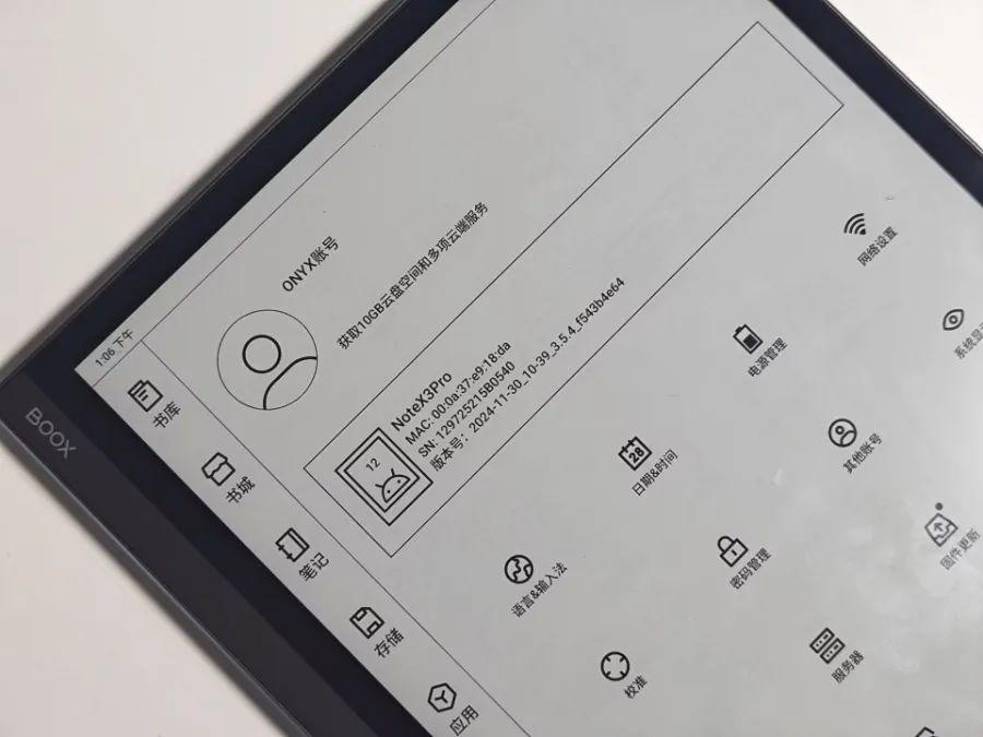 文石Note X3 Pro的屏幕同样是10.3英寸,分辨率为2480×1680,像素密度300PPI。虽然像素密度与汉王N10 Pro相同,但由于没有采用减屏层技术,它的屏幕显示效果在对比度和清晰度上要略逊于汉王N10 Pro。