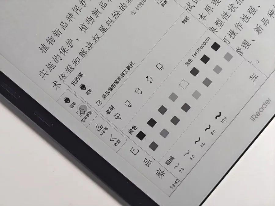 在批注和笔记方面,文石Note X3 Proo的操作相对复杂一些,对于新手小白来讲,需要花时间学习、适应。在笔刷样式选择上,比较少,仅有钢笔和马克笔可选,对于其它样式只能在这两种笔刷上去选择。